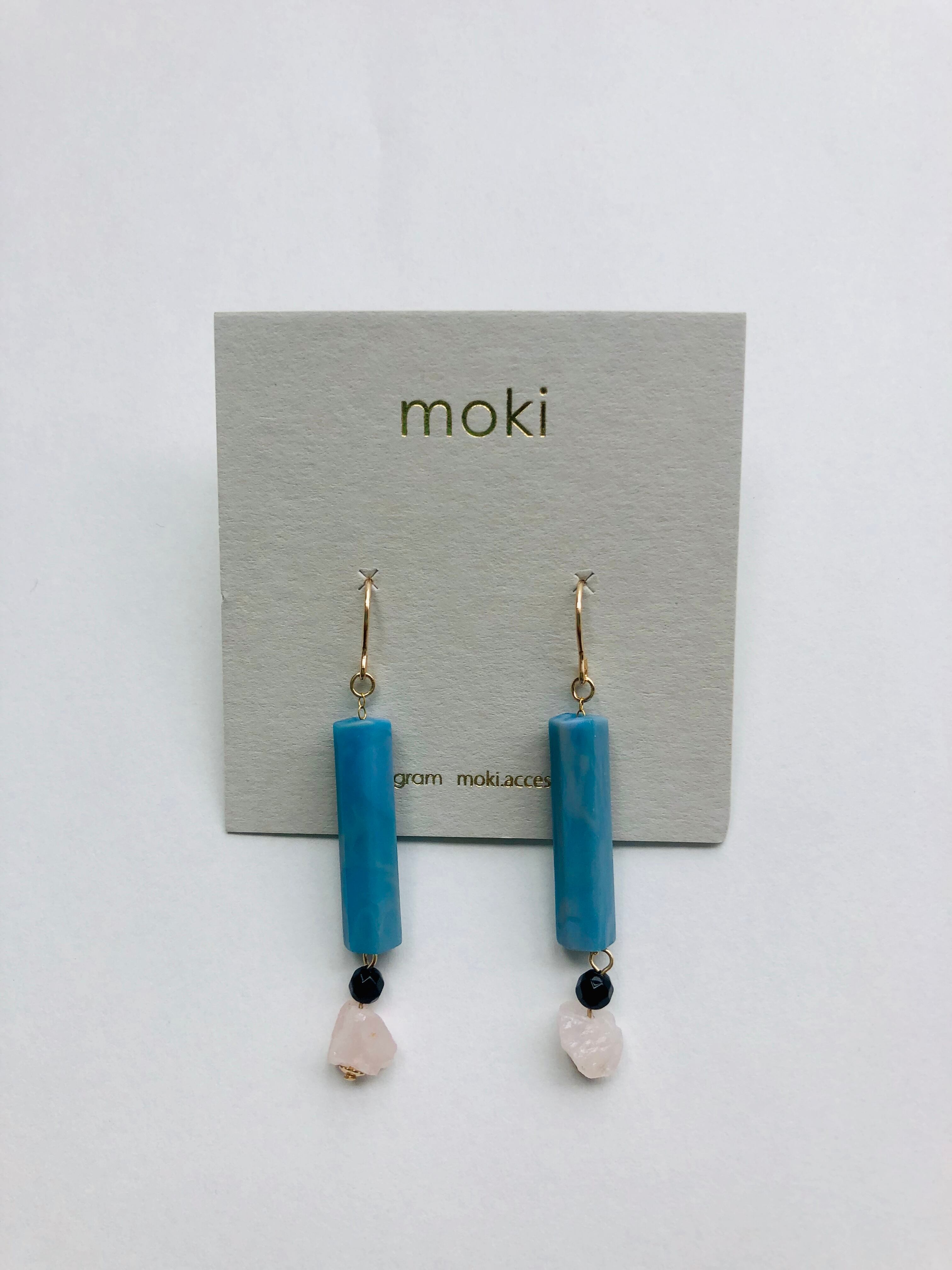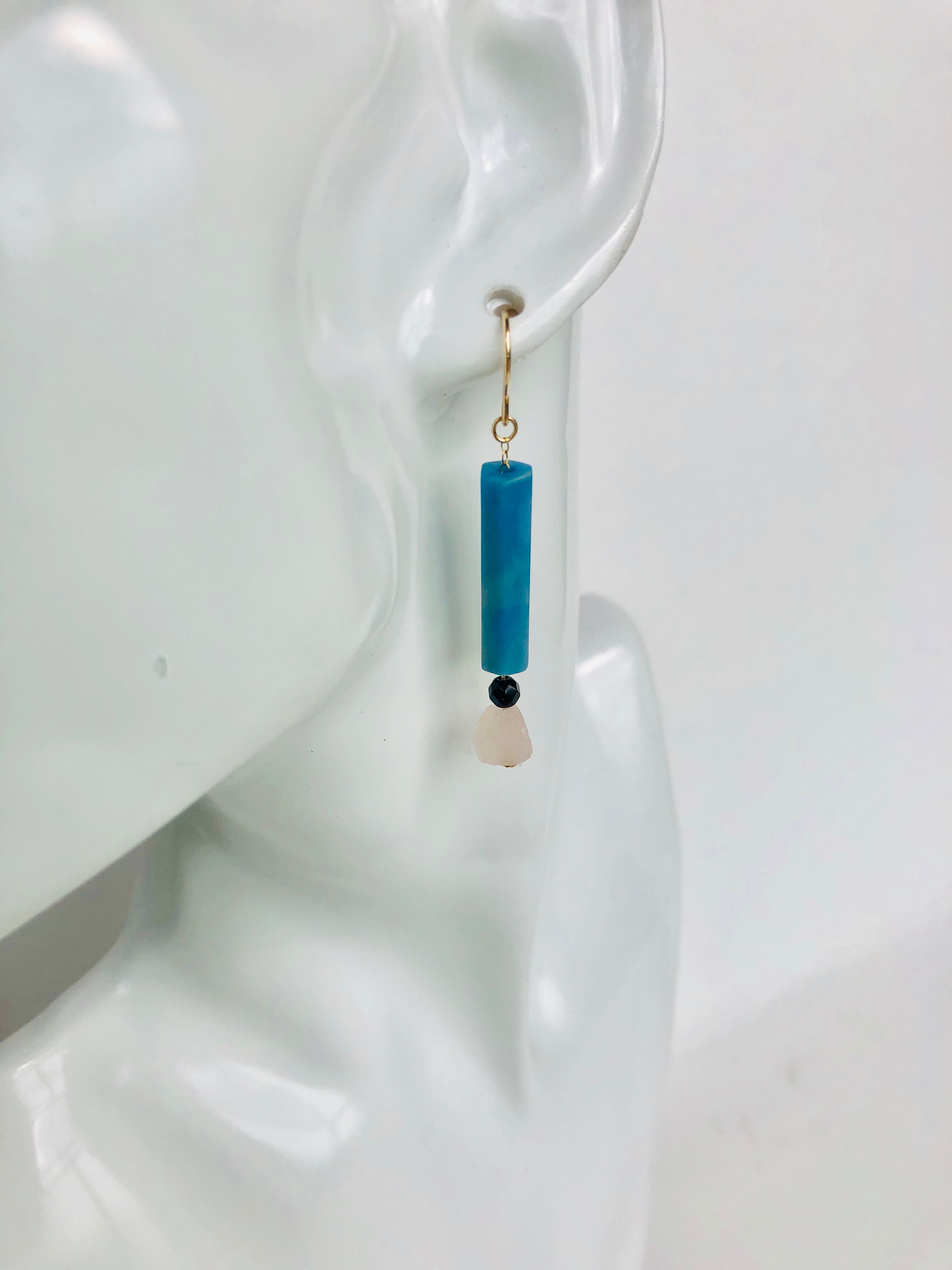 上から西ドイツヴィンテージビーズ.オニキス.ローズクォーツのピアスです。