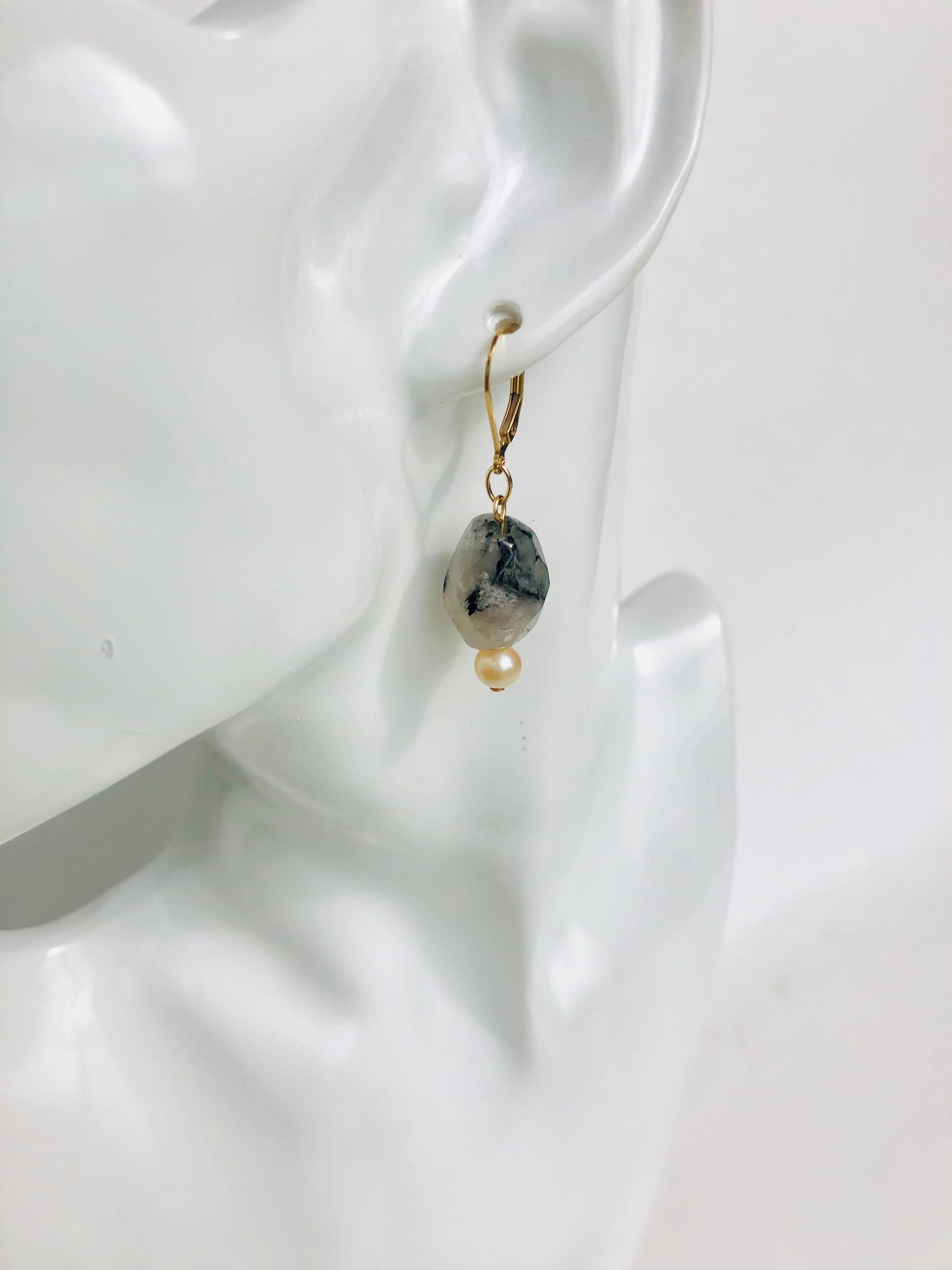 上からトルマリンクォーツ.ジャパンヴィンテージビーズのピアスです。