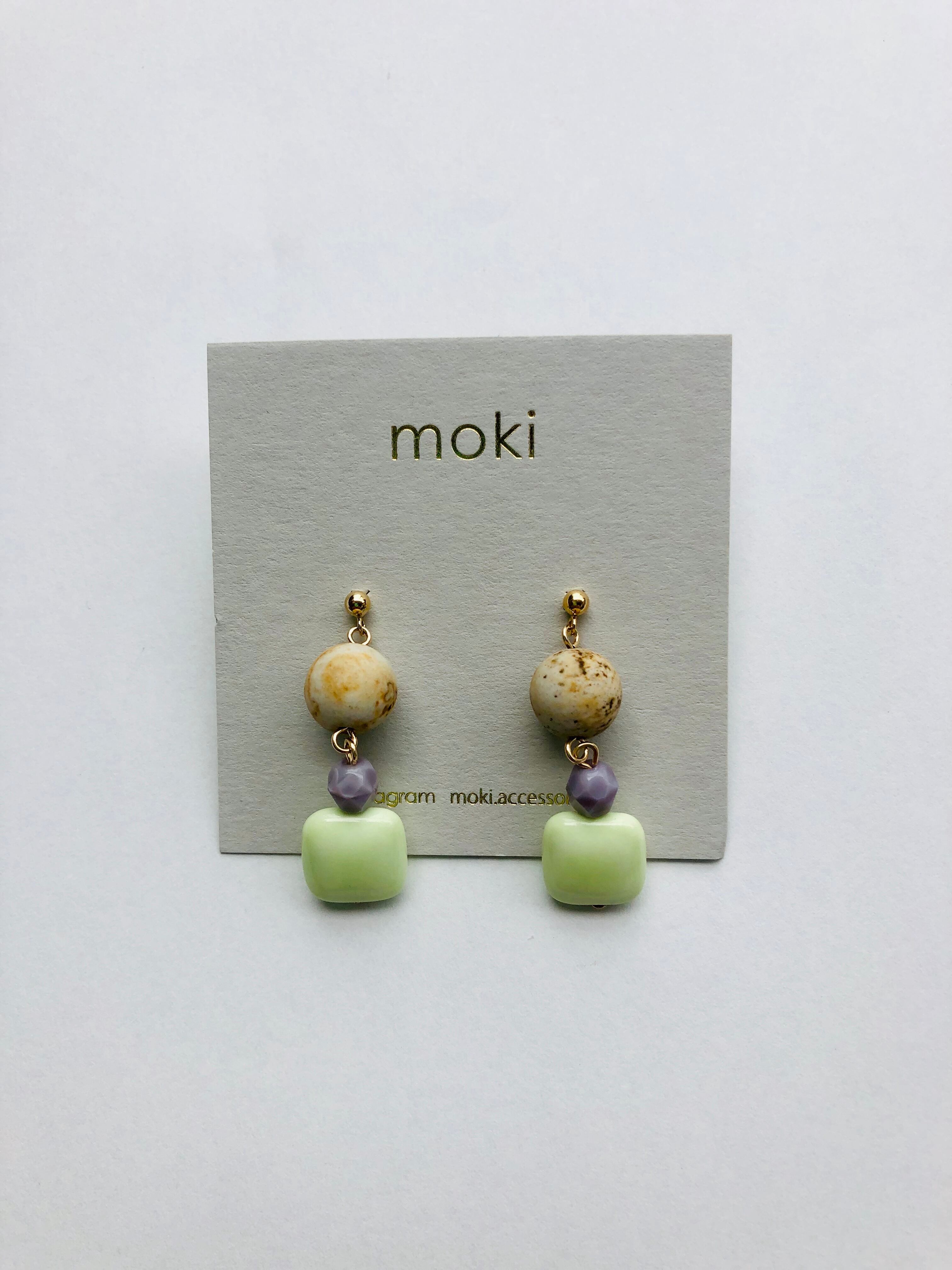 上からピクチャージャスパー.チェコヴィンテージビーズ.レモンクリソプレーズのピアスです。 (素材) 14gfd (重さ) 7g
