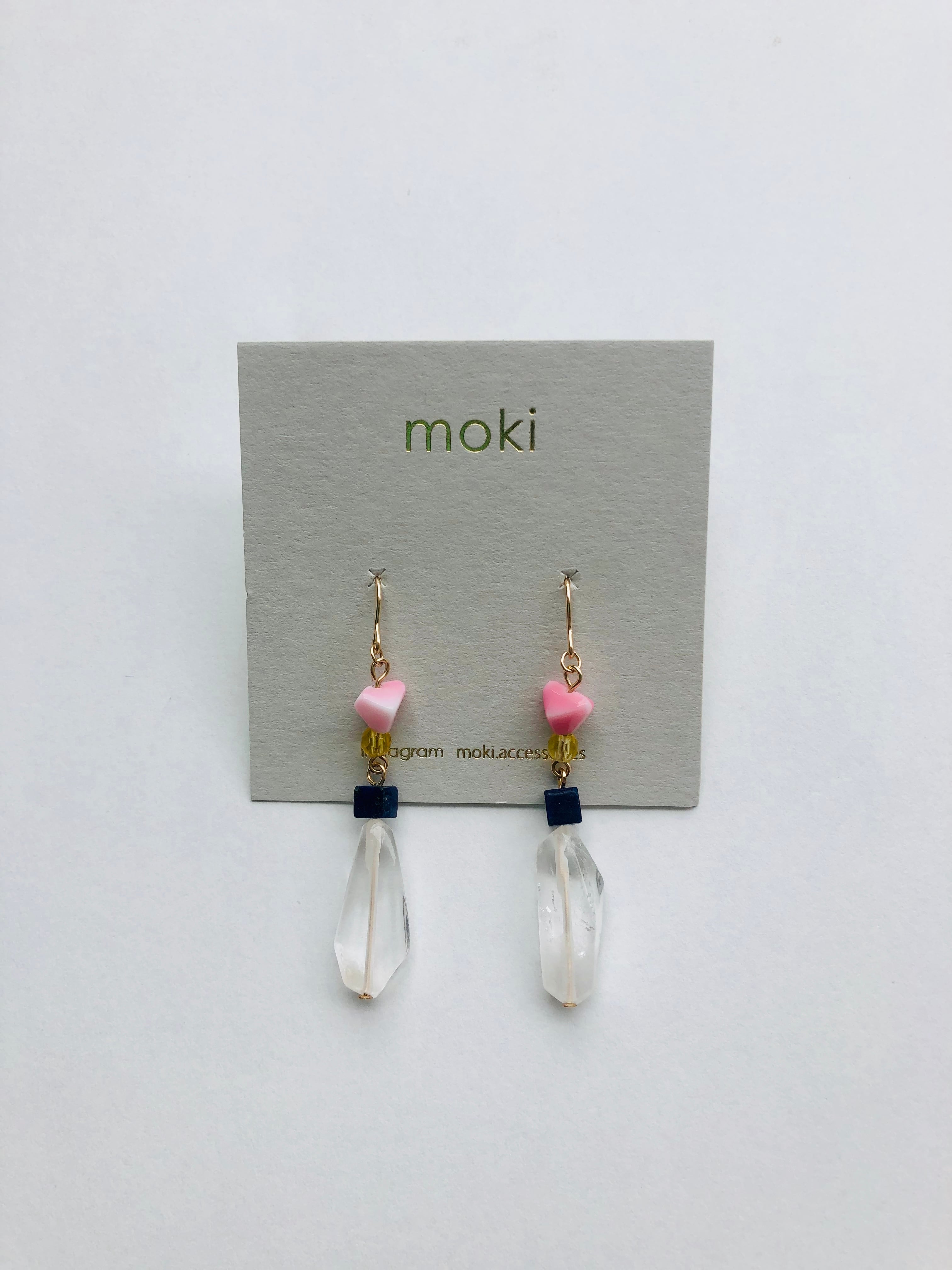 上から西ドイツヴィンテージビーズ.シトリン.ラピスラズリ.クォーツのピアスです。