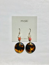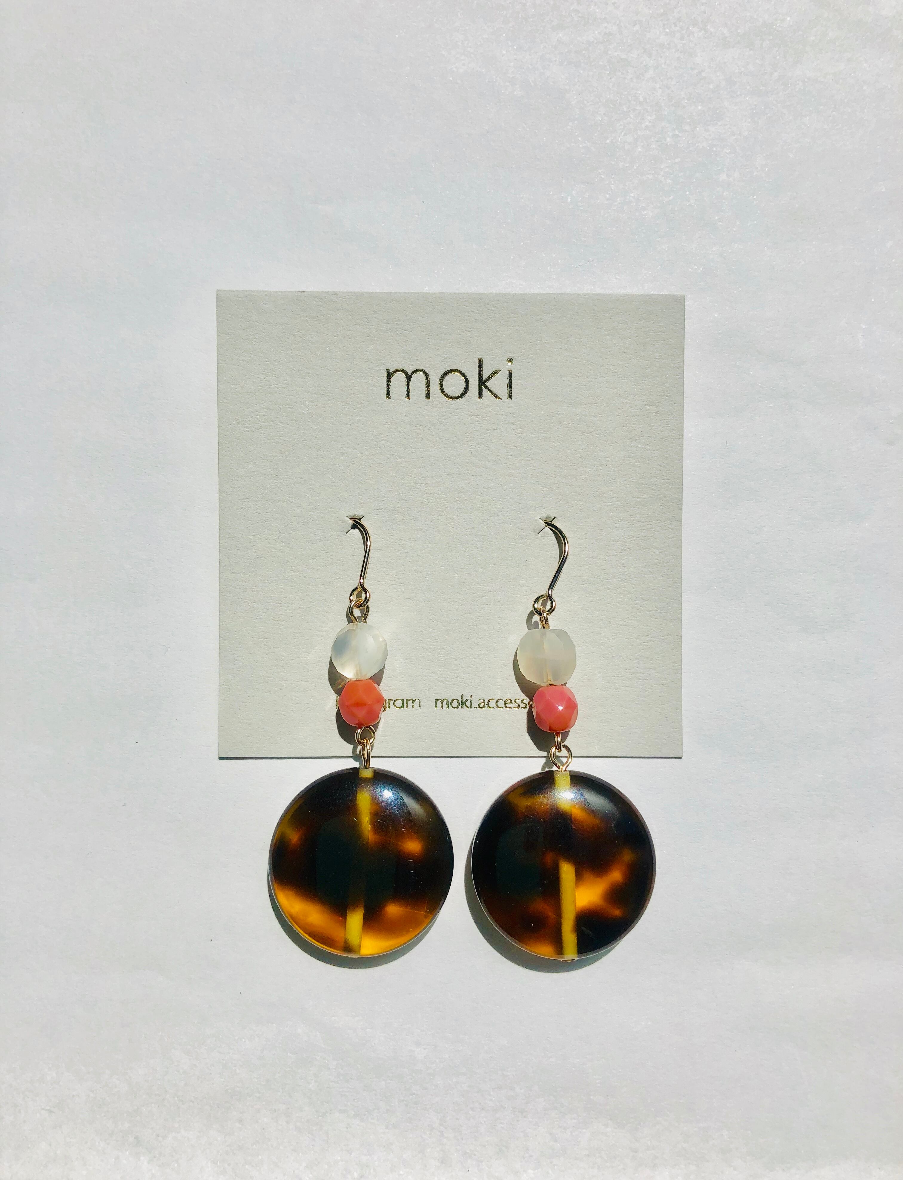 ムーンストーン、チェコピンクヴィンテージビーズ、西ドイツべっ甲ヴィンテージビーズのピアスです。 (素材) 14kgf (重さ) 7g