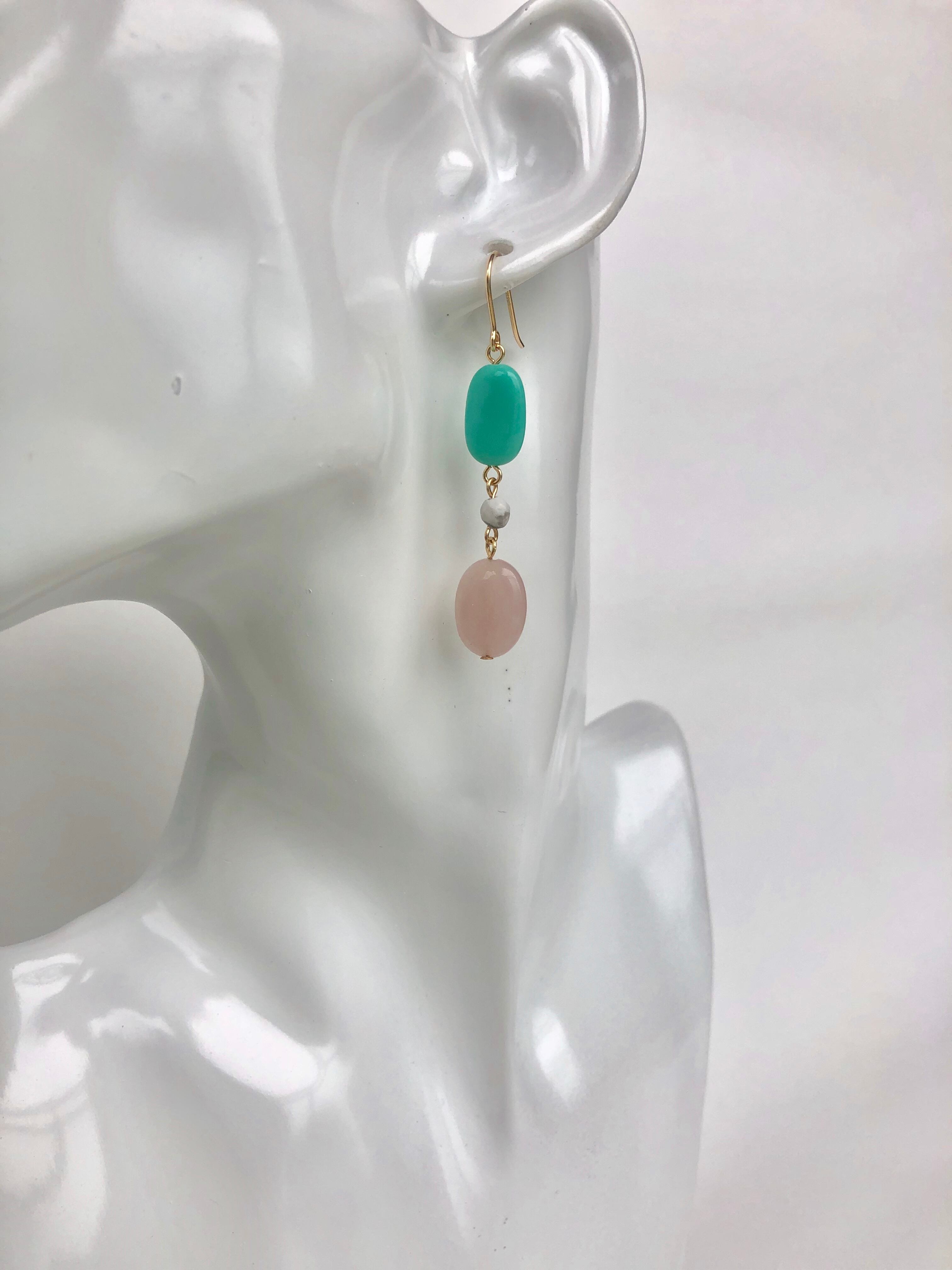 西ドイツヴィンテージビーズ、ハウライト、ローズクォーツのピアスです。