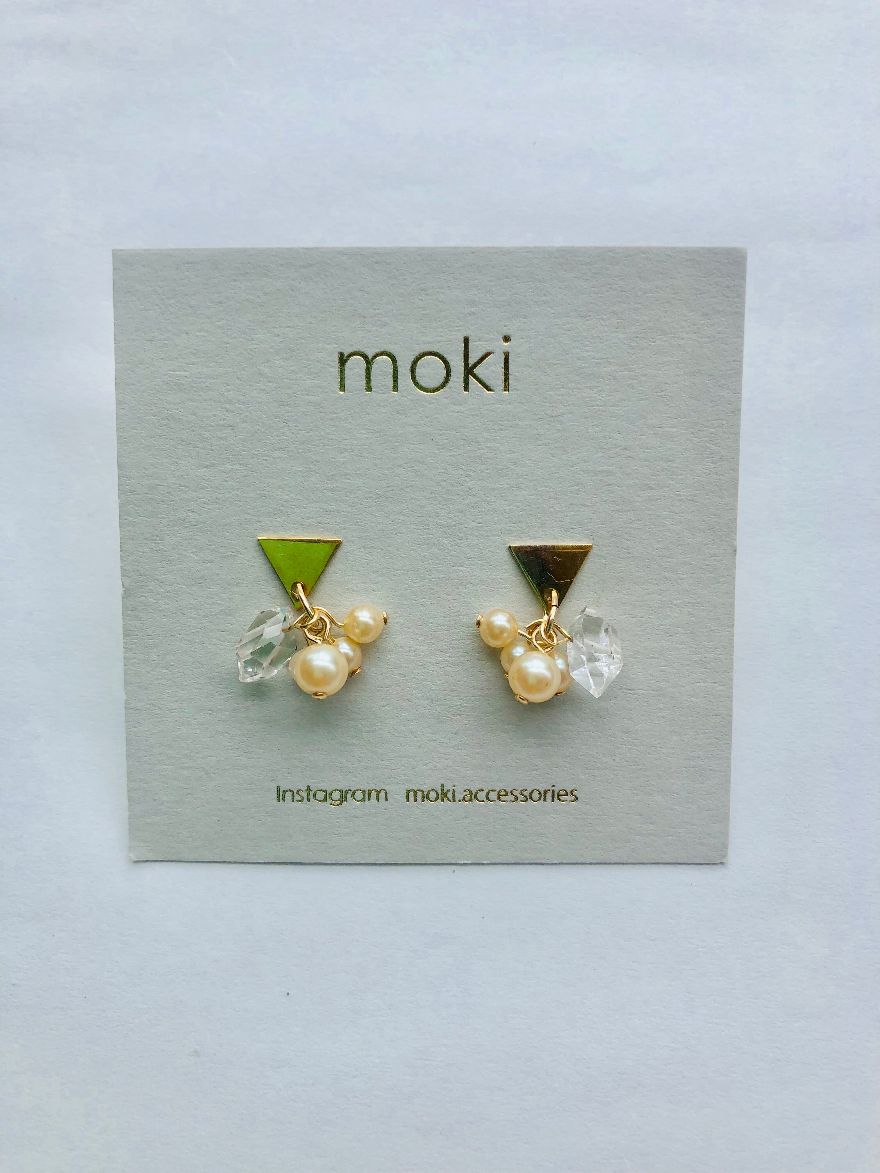 ジャパンパールヴィンテージビーズ、ハーキマーダイヤモンドのピアスです。